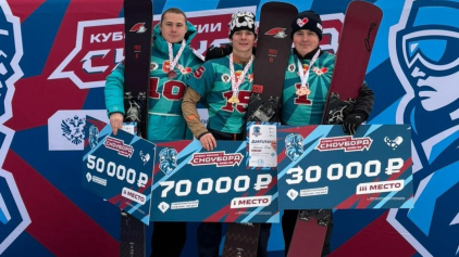 Два сноубордиста стартуют на одинаковых параллельных трассах с большим количеством резких поворотов и стараются опередить друга. Одна из трасс обозначается красными флажками, другая - синими. Длина дистанции до 1000м.